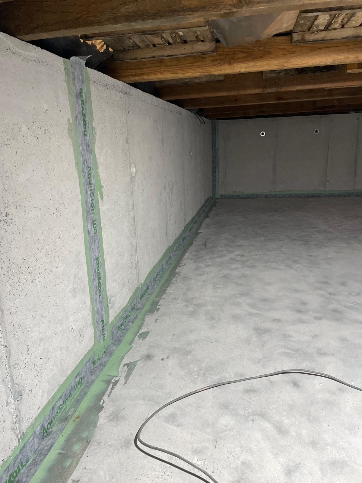 Aquastop banden werden ingewerkt in de hoeken en naden.
